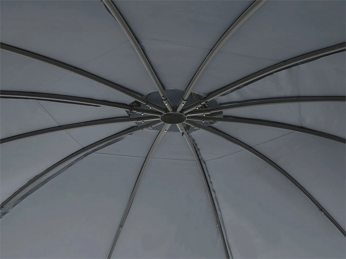 Pabellón de jardín. Perfecto para relajarse y descansar en el jardín, este pabellón te ayudará a disfrutar de los días soleados al aire libre. Construido sobre un marco de acero resistente, puedes estar seguro de su estabilidad. Viene equipado con cortinas gris oscuro que se pueden cerrar cuando se desea más privacidad. La salida de aire en la parte superior proporciona circulación incluso con cortinas cerradas. Detalles: Tipo de Producto: Pabellón de jardín Estilo: Moderno Color: Gris Tonalidad: Grafito Tipo de material: Acero Material principal: Acero Material adicional: Poliéster Composición del Material: 100% Poliéster Forma: Redonda Acabado: Revestimiento en polvo Placas: No Dimensiones: Profundidad: 368 cm Ancho: 368 cm Altura: 275 cm Peso: 33 kg La oferta incluye: 1 x Pabellón de jardín, Clavijas incluidas Ventajas: Techo doble para una circulación de aire eficiente, Se puede montar con clavijas, no se requieren cimientos, 6 cortinas con prácticos lazos, Construcción muy estable, Resistencia UV 5 (ISO 105-B02, UPF 30+ (filtra el 96,7% de la radiación UV Información de montaje: Requiere montaje completo. Más de 60 min. Información adicional: Por razones de seguridad, el pabellón debe quedar bien fijado al piso. El set incluye los accesorios necesarios para este propósito. Los elementos de fijación para otras superficies no están incluidos. Texto de resistencia: Gracias a su resistencia al agua, puedes utilizar el producto al aire libre y dejarlo a la intemperie durante lluvias ligeras. Si no es posible guardarlo en un lugar cerrado y protegido, recomendamos utilizar una funda protectora. La exposición prolongada a la humedad puede provocar daños en el mueble. Resistencia: Agua ligera / humedad Consejos de mantenimiento: Acero: 1.Cualquier daño a la capa de pintura exterior debe protegerse de la humedad 2.Para garantizar la protección contra la corrosión, evite los limpiadores alcalinos o ácidos. Después de limpiar, secar bien 3.Quite las tapas protectoras con regularidad para que salga todo el líquido, déjelas secar y utilice un spray anticorrosión si es necesario 4.Limpiar con detergentes suaves 5.Los muebles de acero y sus elementos no deben exponerse al agua. De lo contrario, existe la posibilidad de que el agua oxidada salga de las tuberías del marco 6.Cuando no estén en uso, los muebles deben guardarse en el interior o bajo una cubierta protectora 7.Para aumentar la durabilidad del artículo, manténgalo seco y recuerde la limpieza regular. Poliéster: 1.Cuando no esté en uso, manténgalo en un lugar limpio y seco para protegerlo de las condiciones atmosféricas 2.No secar en secadora ni planchar 3.Lavar a mano únicamente, usar agua fría y un detergente suave.