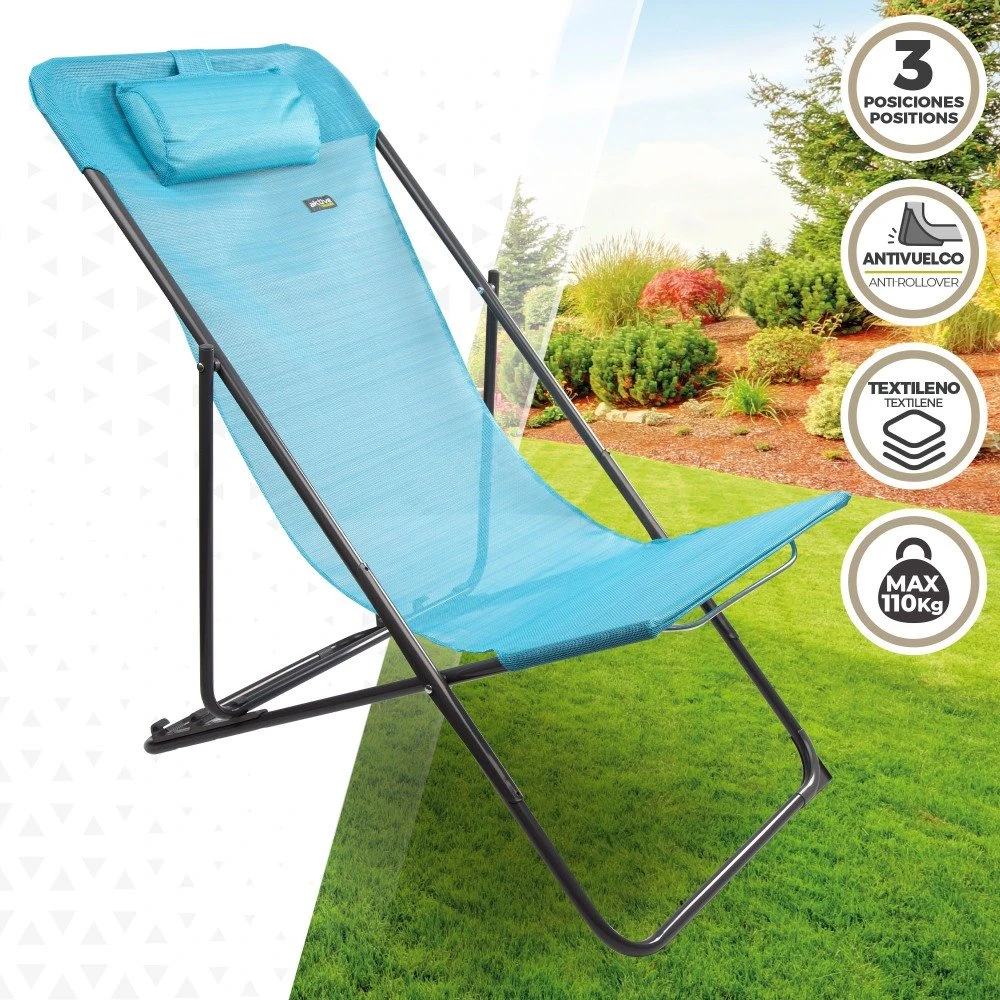 - Materiales: tejido de textileno (resistente, transpirable y fácil de limpiar, estructura de acero (resistente y duradera