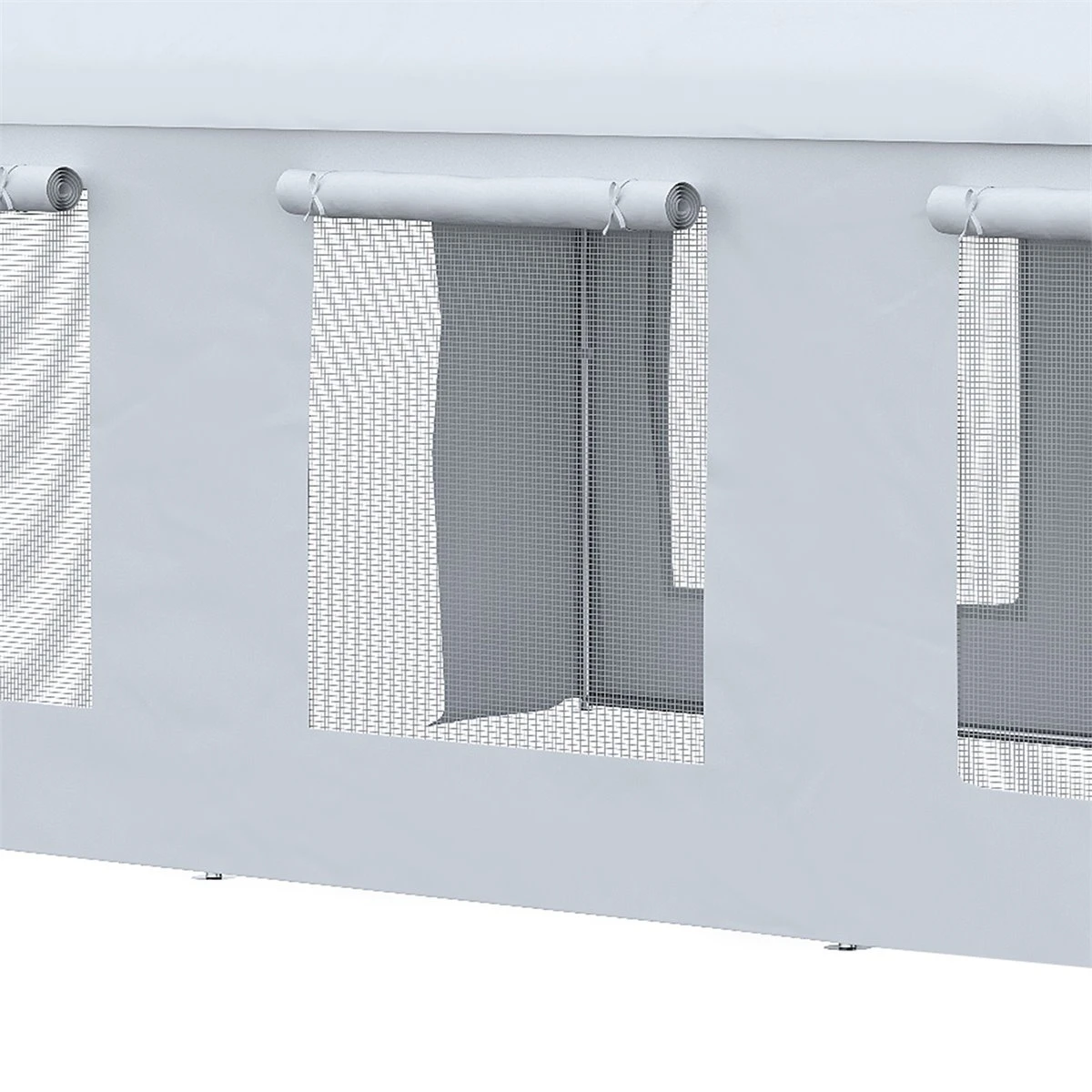 ¿Estás planeando una actividad o evento al aire libre? Un Gazebo es imprescindible en todas las épocas del año. En verano para protegerse del sol, en otoño o en invierno del frío y en cualquier época del viento y la lluvia. Además, esta pérgola de Outsunny con estructura de acero cuenta con cuerdas y piquetas para fijar en el suelo para mayor resistencia. Tiene ventanas de malla mosquitera y las paredes laterales se pueden quitar según tus necesidades. Ideal para fiestas o eventos.