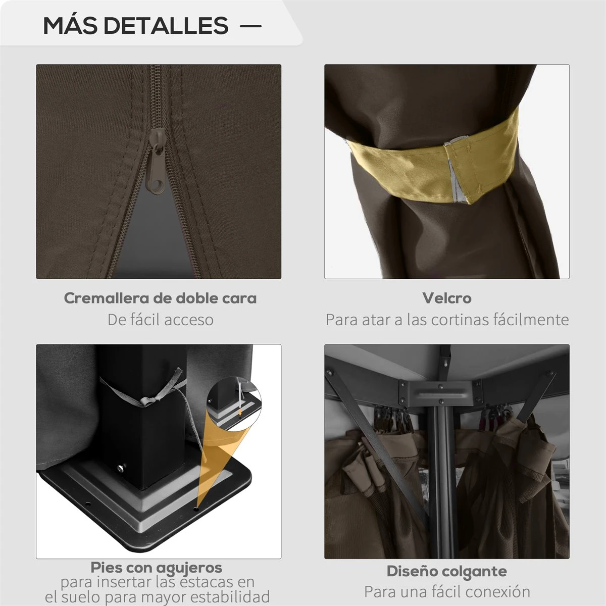 - – Con 4 cortinas laterales para crear un espacio cerrado con más privacidad