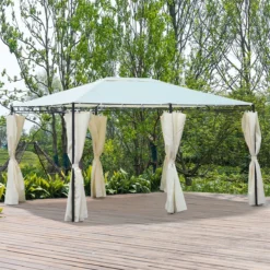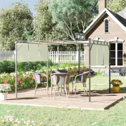 Añade elegancia a tu jardín con nuestra pérgola de Outsunny. Este cenador es un complemento ideal que proporciona un área donde poder disfrutar cómodamente al aire libre. Está fabricado en resistente aleación de aluminio y cuenta con ganchos y paredes protectoras que te mantendrán cómodo en todo momento. Ofrece un espacio perfecto para tus comidas y fiestas con amigos y familia en el jardín.