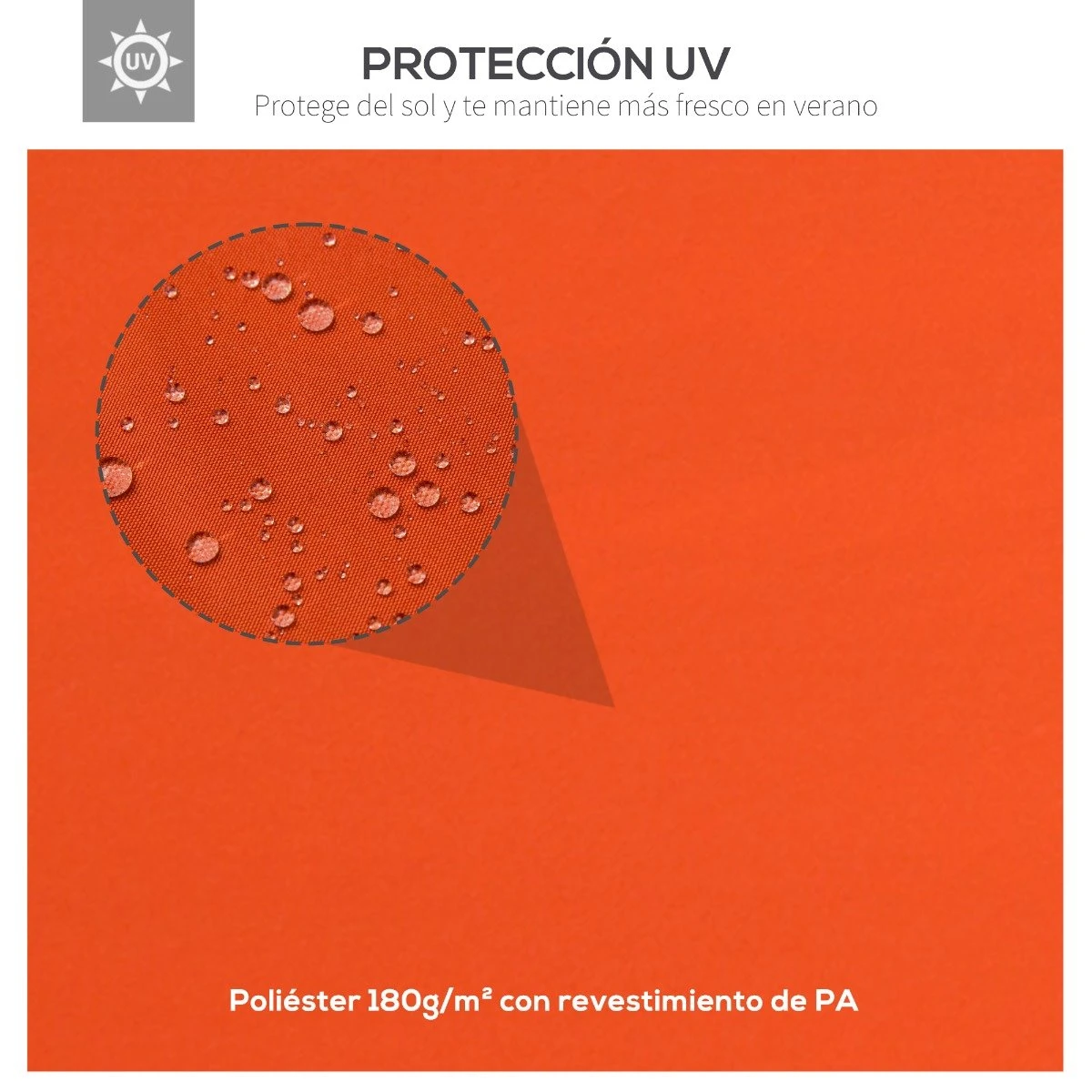 - – Hecha con tejido de poliéster anti-UV transpirable de 180 g/m² con revestimiento de PA