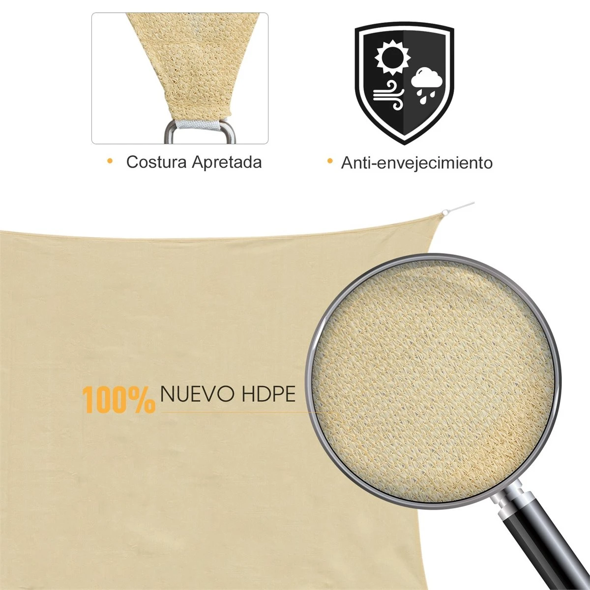 ¿Quieres protegerte del sol en tus zonas de exterior? Este toldo vela es una solución eficaz y elegante que se adapta a la mayoría de los espacios exteriores. Es discreto y fácil de montar y desmontar según tus necesidades. Ideal para el patio, la terraza, el jardín, la piscina, áreas de picnic, de juego para niños, incluso para sombrear calles o ferias. Este toldo está hecho de polietileno, un tejido resistente al moho y al desgaste. Los toldos vela de Outsunny proporcionan un 95% de protección contra los rayos UV, te ofrecen sombra y una reducción de la temperatura permitiendo estar fresco al aire libre. Disfruta de los espacios exteriores en primavera y verano con estas velas de sombra.
