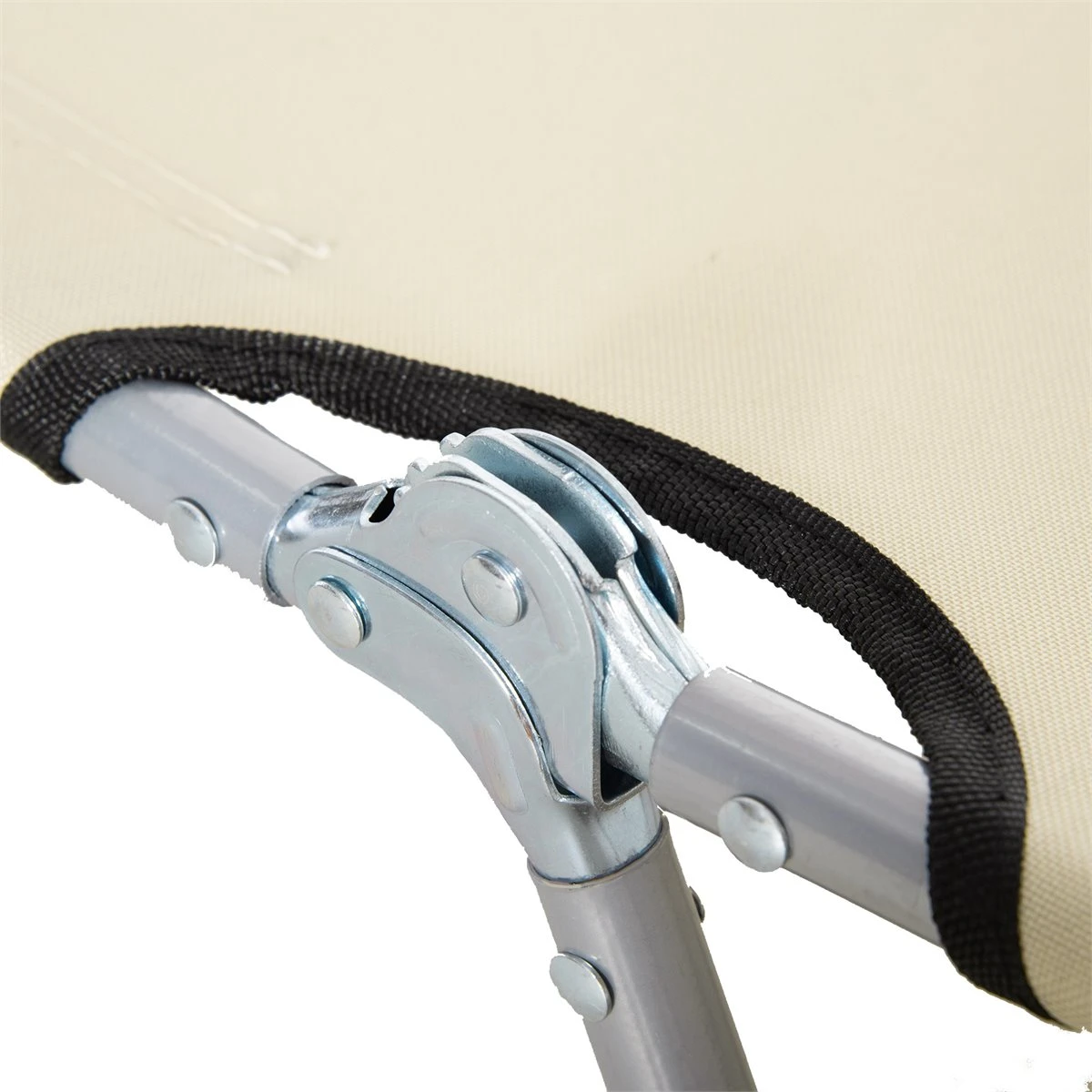 Esta tumbona relax plegable de Outsunny es ideal para tumbarse bajo el sol en el jardín, llevar de viaje o incluso como cama auxilia de forma puntual en casa. Con estructura de metal y tela Oxford de alta calidad. Tiene una capacidad de carga de 120 kg, es sólida y cómoda, ligera y plegable, perfecta para llevar al aire libre y guardar en cualquier sitio. Cuenta con un respaldo reclinable en 5 posiciones y un orificio para la cabeza, ideal para leer boca abajo.