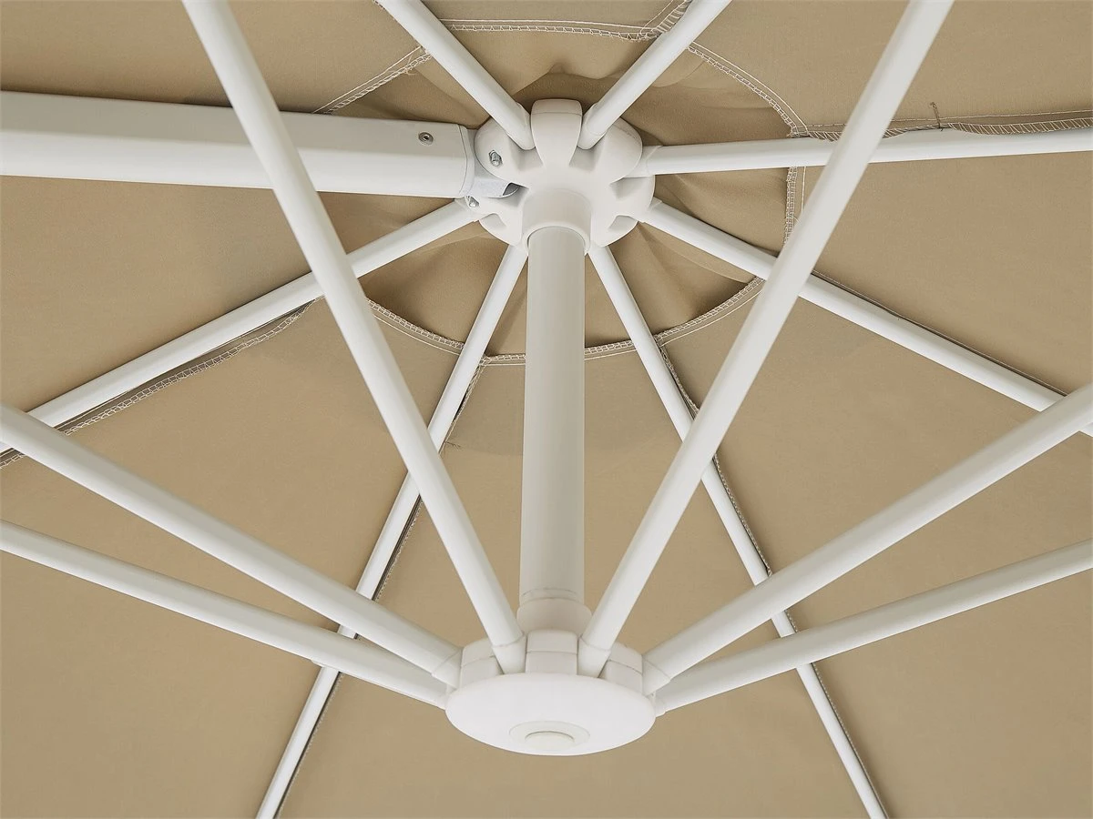 Sombrilla de jardín. Añade un toque de elegancia a tu zona exterior con esta sombrilla de jardín. Está fabricada a partir de poliéster resistente a las manchas y a condiciones climáticas adversas. La función giratoria 360º permite orientarla a la dirección deseada. El mecanismo de manivela facilita la apertura y el cierre. Detalles: Tipo de Producto: Sombrilla sin volantes Estilo: Moderno Color: Gris Tonalidad: Gris oscuro Tipo de material: Metal Material principal: Poliéster Material adicional: Aluminio Composición del Material: 100% Poliéster Forma: Octagonal Rotación 360: Sí Placas: No LED: No Número de láminas: 8 Láminas: 8 Inclinación: Sí Mecanismo de abertura de la sombrilla: Manivela Dimensiones: Profundidad: 295 cm Ancho: 295 cm Diámetro del poste: 40 Altura: 254 cm Peso: 9 kg La oferta incluye: 1 x Sombrilla, No incluye: base para la sombrilla Ventajas: Mecanismo de abertura por manivela, Pantalla giratoria e inclinable de 360°, Base en cruz para pesas en sombrillas, Colores elegantes y diseño original, Apariencia moderna y calidad durante muchos años, Resistencia UV Información de montaje: Requiere montaje completo. 5-15 min. Información adicional: Debe tenerse en cuenta que el peso ideal de la base para la sombrilla es de unos 50 kg. De esta forma, la sombrilla podrá soportar vientos de hasta 25 km/h. Una vez que la sombrilla esté completamente cerrada o abierta, no continúes girando la manivela en la misma dirección, ya que podrías dañar el mecanismo. Texto de resistencia: El producto está hecho con tela resistente a los rayos UV, lo que significa que se puede usar bajo la luz del sol sin preocuparse por la pérdida de color. En cualquier caso, es recomendable colocar los muebles debajo de una cubierta impermeable cuando no se utilicen, para asegurar su máxima durabilidad. Resistencia: Rayos UV Consejos de mantenimiento: Poliéster: 1.Cuando no esté en uso, manténgalo en un lugar limpio y seco para protegerlo de las condiciones atmosféricas 2.Aspire con un accesorio adecuado 3.Limpiar con champú seco y una esponja húmeda o un limpiador suave.