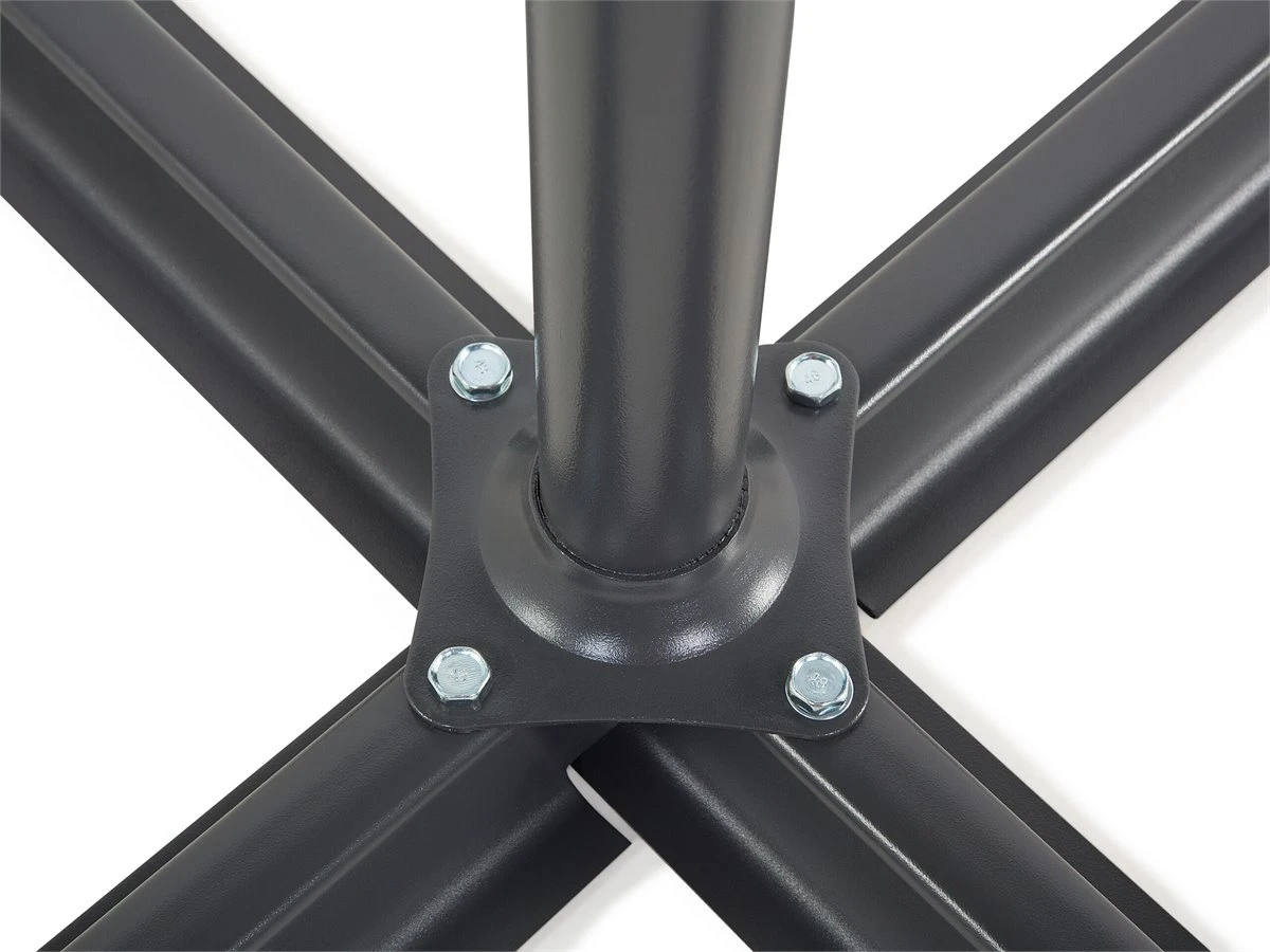 Sombrilla de jardín. Añade funcionalidad a tu zona exterior con esta sombrilla de jardín. Está fabricada a partir de tela de poliéster resistente a las manchas y a condiciones climáticas adversas. La barra de metal y las 8 varillas ofrecen estabilidad. El mecanismo de manivela facilita la apertura y el cierre. Es plegable, lo que permite ahorrar espacio cuando no está en uso. Detalles: Tipo de Producto: Sombrilla sin volantes Estilo: Moderno Color: Gris Tonalidad: Gris oscuro Tipo de material: Metal Material principal: Poliéster Material adicional: Acero Composición del Material: 100% Poliéster Forma: Octagonal Rotación 360: No Placas: No LED: No Número de láminas: 8 Láminas: 8 Inclinación: No Mecanismo de abertura de la sombrilla: Manivela Dimensiones: Profundidad: 300 cm Ancho: 300 cm Diámetro del poste: 48 Altura: 240 cm Peso: 12 kg La oferta incluye: 1 x Sombrilla, No incluye: base para la sombrilla Ventajas: Mecanismo de abertura por manivela, Pantalla giratoria e inclinable de 360°, Base en cruz para pesas en sombrillas, Instalación fácil y rápida, Construcción muy estable, Resistencia UV, UPF 30+ (filtra el 96,7% de la radiación UV Información de montaje: Requiere montaje completo. 5-15 min. Información adicional: Debe tenerse en cuenta que el peso ideal de la base para la sombrilla es de unos 50 kg. De esta forma, la sombrilla podrá soportar vientos de hasta 25 km/h. Una vez que la sombrilla esté completamente cerrada o abierta, no continúes girando la manivela en la misma dirección, ya que podrías dañar el mecanismo. Texto de resistencia: El producto está hecho con tela resistente a los rayos UV, lo que significa que se puede usar bajo la luz del sol sin preocuparse por la pérdida de color. En cualquier caso, es recomendable colocar los muebles debajo de una cubierta impermeable cuando no se utilicen, para asegurar su máxima durabilidad. Resistencia: Rayos UV Consejos de mantenimiento: Poliéster: 1.Cuando no esté en uso, manténgalo en un lugar limpio y seco para protegerlo de las condiciones atmosféricas 2.Aspire con un accesorio adecuado 3.Limpiar con champú seco y una esponja húmeda o un limpiador suave. Acero: 1.Los muebles de acero y sus elementos no deben exponerse al agua. De lo contrario, existe la posibilidad de que el agua oxidada salga de las tuberías del marco 2.Cuando no estén en uso, los muebles deben guardarse en el interior o bajo una cubierta protectora 3.Para aumentar la durabilidad del artículo, manténgalo seco y recuerde la limpieza regular 4.Cualquier daño a la capa de pintura exterior debe protegerse de la humedad 5.Para garantizar la protección contra la corrosión, evite los limpiadores alcalinos o ácidos. Después de limpiar, secar bien 6.Quite las tapas protectoras con regularidad para que salga todo el líquido, déjelas secar y utilice un spray anticorrosión si es necesario 7.Limpiar con detergentes suaves.