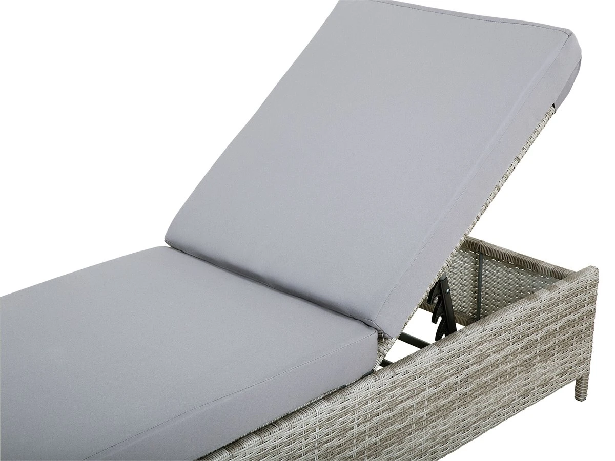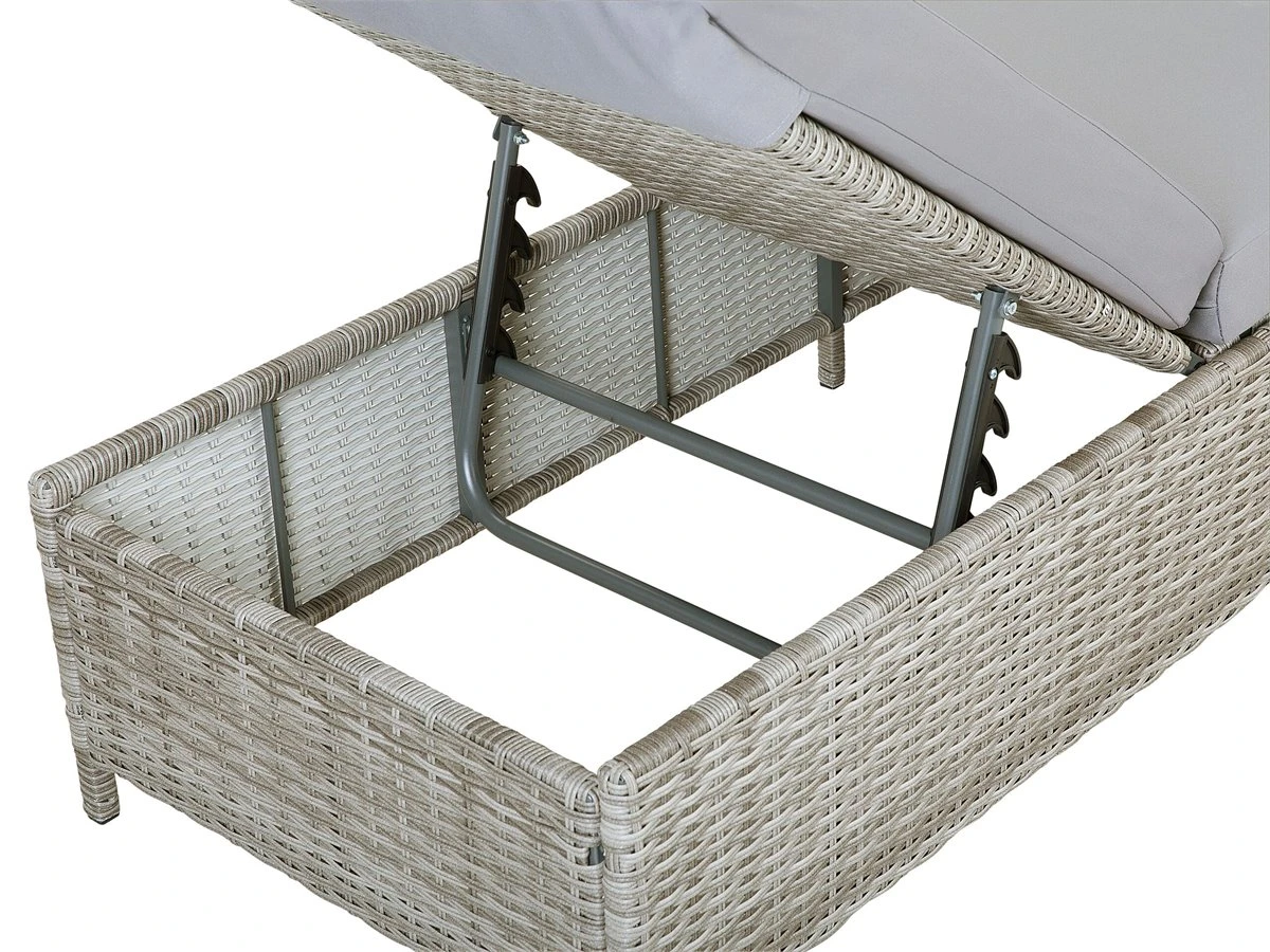 Elegante tumbona en ratán de alta calidad en color blanco. Esta tumbona está elaborada de poli ratán ecológico de alta calidad, duradero y resistente a la intemperie. El marco de acero con recubrimiento en polvo es excepcionalmente resistente. La tumbona viene con un cojín gris de 9 cm de grosor. Es resistente a las manchas y fácil de mantener limpia. La funda de cojín es extraíble y se puede lavar (temperatura máxima de 40ºC. El respaldo ajustable te permite elegir entre 5 posiciones diferentes. Detalles: Tipo de Producto: Tumbona Estilo: Moderno Color: Blanco Tipo de material: Ratán sintético Material principal: Ratán sintético Material adicional: Acero Composición del Material: 100% Poliéster Respaldo ajustable: Sí Apoyabrazo: No Acabado: Revestimiento en polvo Plegable: No Densidad de espuma del asiento: 24 kg/m3 Dimensiones: Profundidad: 201 cm Espesor del asiento: 9 cm Altura del asiento: 52 cm Ancho: 65 cm Altura: 43-79 cm Peso: 22 kg Capacidad de peso: 120 kg La oferta incluye: 1 x Chaise longue, 1 x Cojín del asiento Ventajas: Respaldo ajustable en 5 posiciones, Muy cómodo, El grueso acolchado del asiento brinda comodidad, Perfecto para todo tipo de exterior, Resistencia UV 4 (ISO 105-B02 Información de montaje: Requiere montaje parcial. 20-40 min. Texto de resistencia: Gracias a su resistencia al agua, puedes utilizar el producto al aire libre y dejarlo a la intemperie durante lluvias ligeras. Si no es posible guardarlo en un lugar cerrado y protegido, recomendamos utilizar una funda protectora. La exposición prolongada a la humedad puede provocar daños en el mueble. Resistencia: Agua ligera / humedad Consejos de mantenimiento: Ratán sintético: 1.Los utensilios o accesorios de vidrio pueden sobrecalentar la superficie 2.Para alargar la vida útil del mueble, protéjalo de la exposición directa al sol 3.Se recomienda utilizar una funda protectora para la temporada de invierno o, si es posible, para mantener los muebles secos y frescos en el interior 4.Limpiar con detergentes a base de jabón. No utilizar limpiadores químicos corrosivos. Poliéster: 1.Cuando no esté en uso, manténgalo en un lugar limpio y seco para protegerlo de las condiciones atmosféricas 2.No secar en secadora ni planchar 3.Lavar a mano únicamente, usar agua fría y un detergente suave.